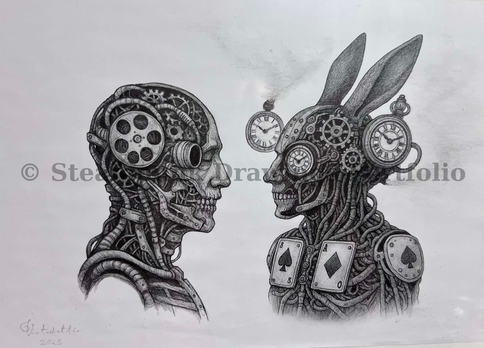A collection of pencil and pen drawings from the universe of machines and dark aesthetics